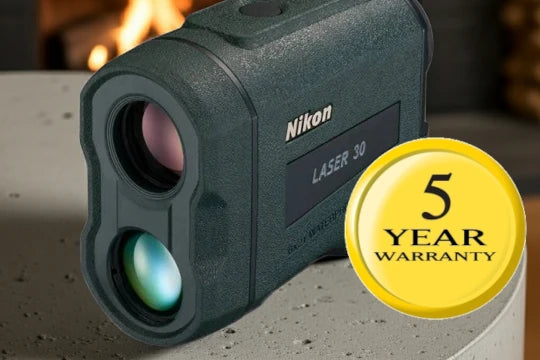 The LASER 30 is backed by Nikon's Five Year Limited Warranty against defects in material and workmanship for five years from the date of purchase by the original purchaser from a Nikon authorized dealer.