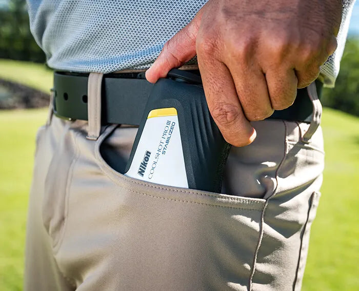 With First Target Priority mode, the COOLSHOT PROIII STABILIZED will ignore background distractions like trees, shrubs or golf carts to make it easier to target the flagstick.