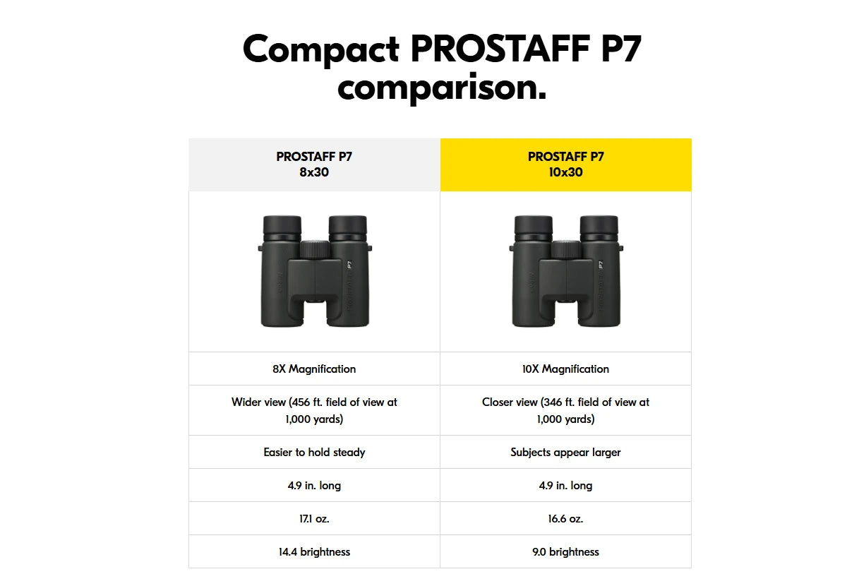Even going from a warm car to the cold winter air won’t fog the lenses on PROSTAFF P7 binoculars.