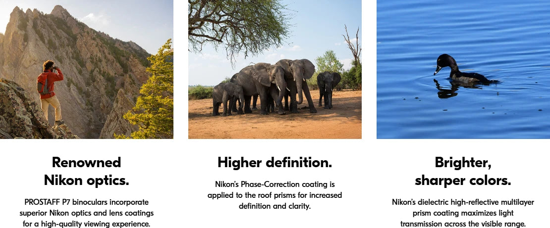 Whether you’re spotting birds near the water’s edge or caught in inclement weather, you won’t have to worry about PROSTAFF P7 binoculars. (Not intended for underwater use.)